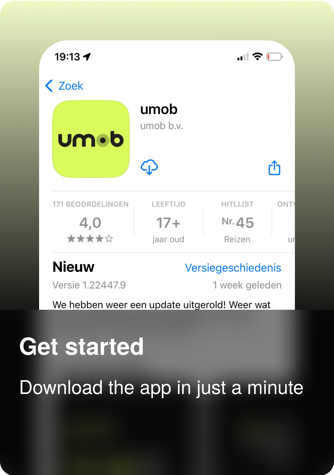 With the umob app you can travel anywhere you want and access various types of transportation. From 9 operators, in 28 cities across 4 countries, all in one app. You will find us now in Netherlands, Belgium, France and Spain.